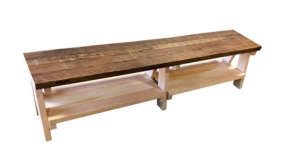 30"x35.5" all purpose table with all of the signature features of Vinoplank. Suspension holes in staves were used to hang the oak sticks for flavoring wine and remnant lines from the toasting process vintners use to produce a variety of flavors.